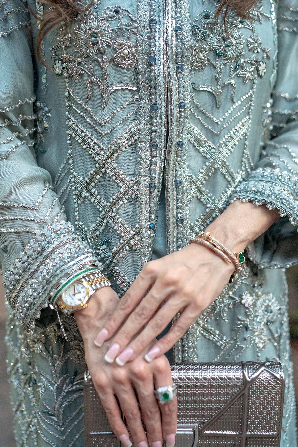 A Dramatic Jacket Cut From Organza Net Hand Embellished With Pearls, Kora, Dabka, Swarovski Crystals, Pure Silk Thread Work And Swarovski Crystals.