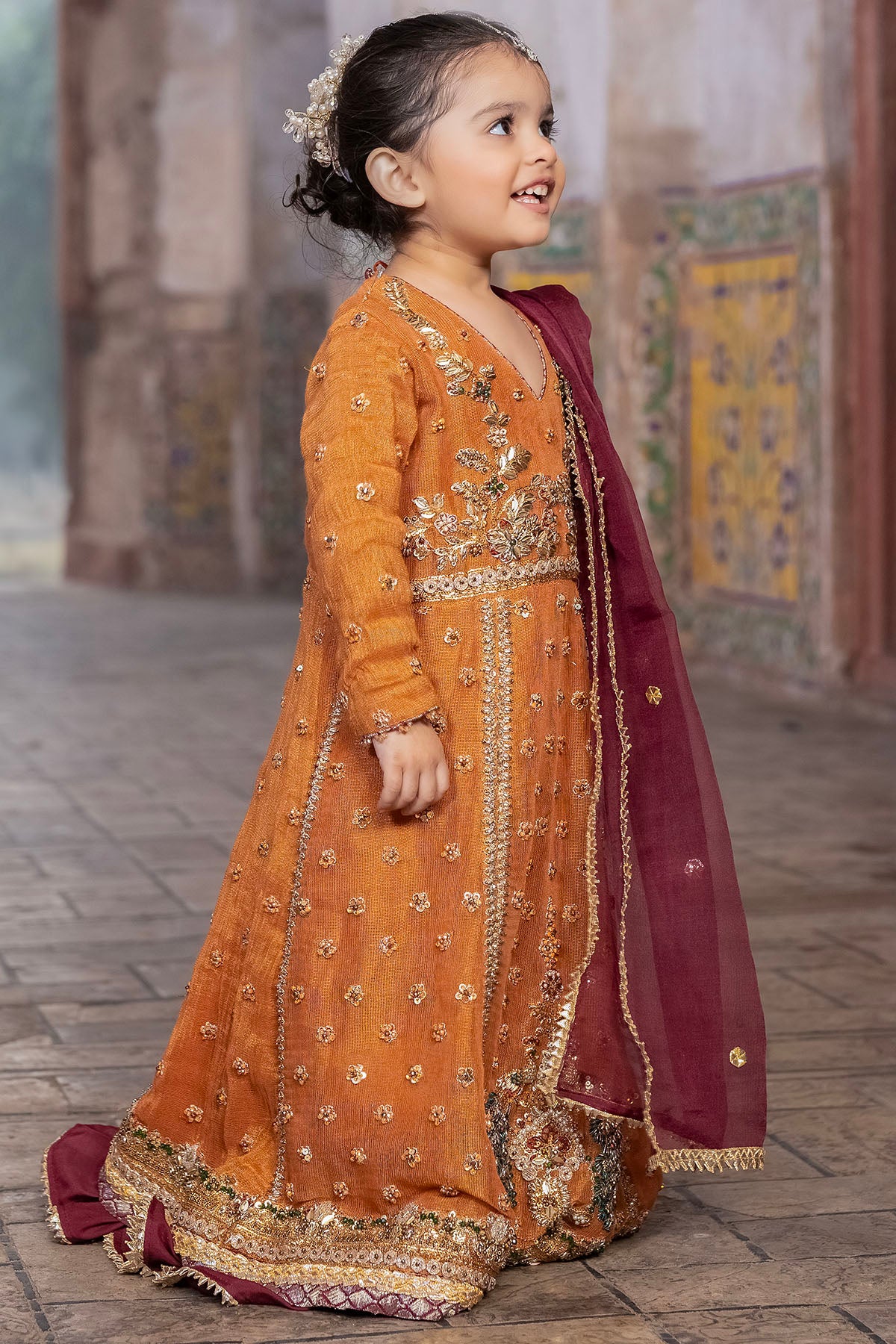 The Rust Pishwas, Adorned With Colorful Embroidery And Antique Handwork, Is A Stunning Piece Of Traditional Attire That Exudes Elegance And Sophistication.