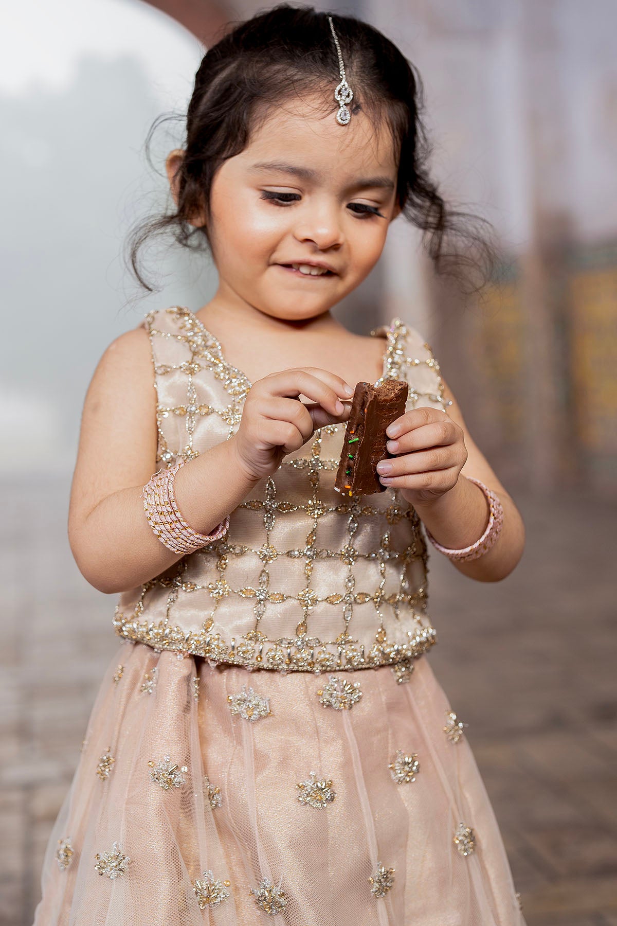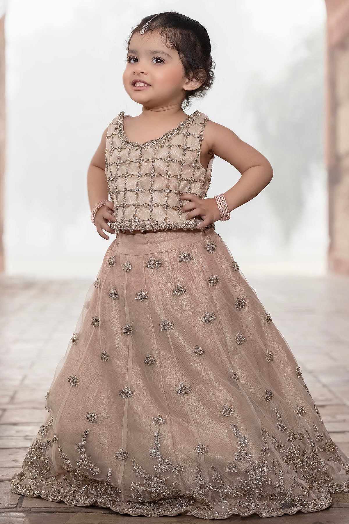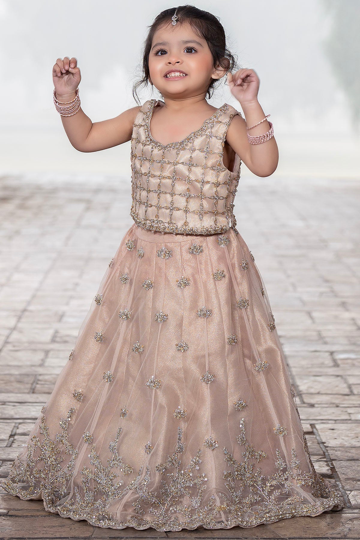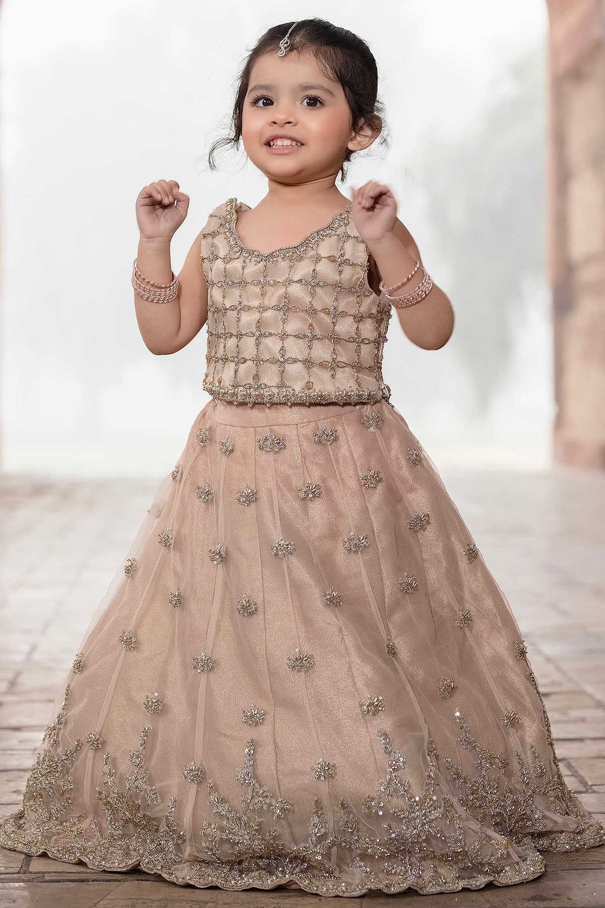Celebrate Your Little One'S Style With This Adorable Pastel Pink Kids' Lehenga Choli, Perfect For The Festive Season.