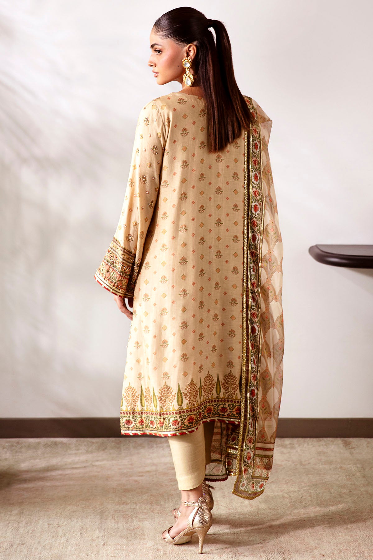 Paired With A Luxurious Silk Dupatta Showcasing A Stunning Print And Finished With Gota Borders, This Ensemble Exudes Elegance And Tradition.