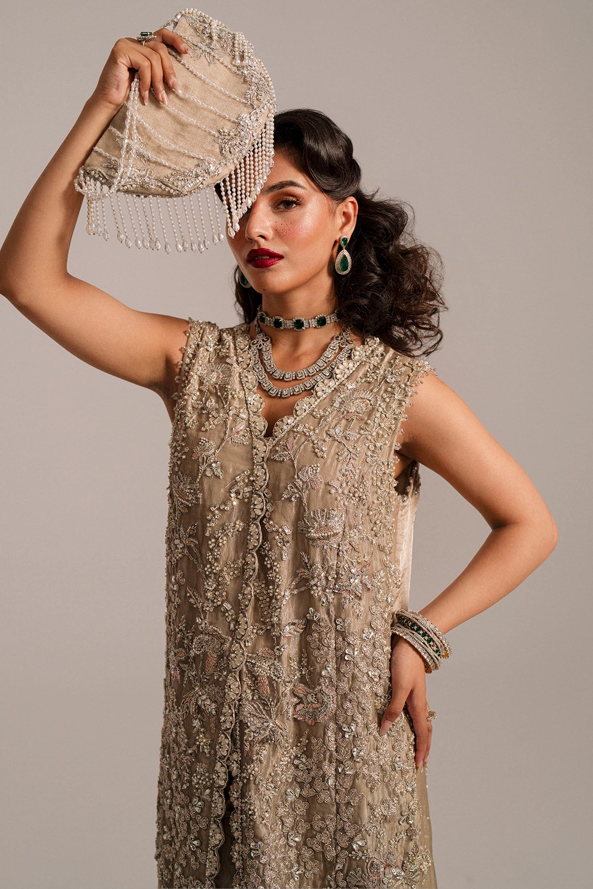 It Is Heavily Embellished With Sequins, Kamdani Work, Naqeshi, And Swarovski Crystals, Adding A Stunning Sparkle And Luxurious Touch To The Ensemble.