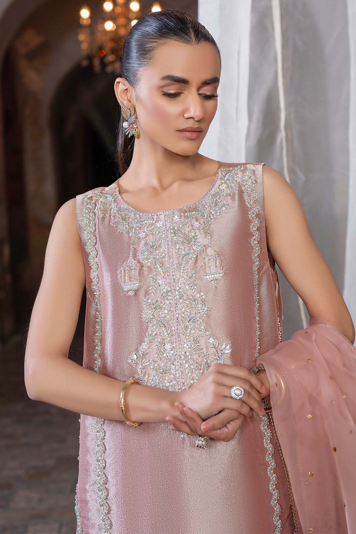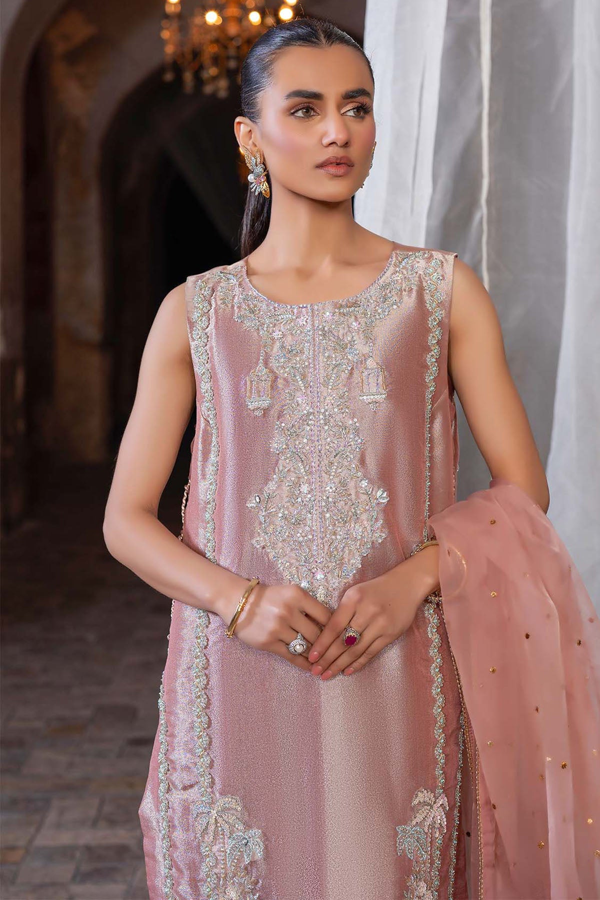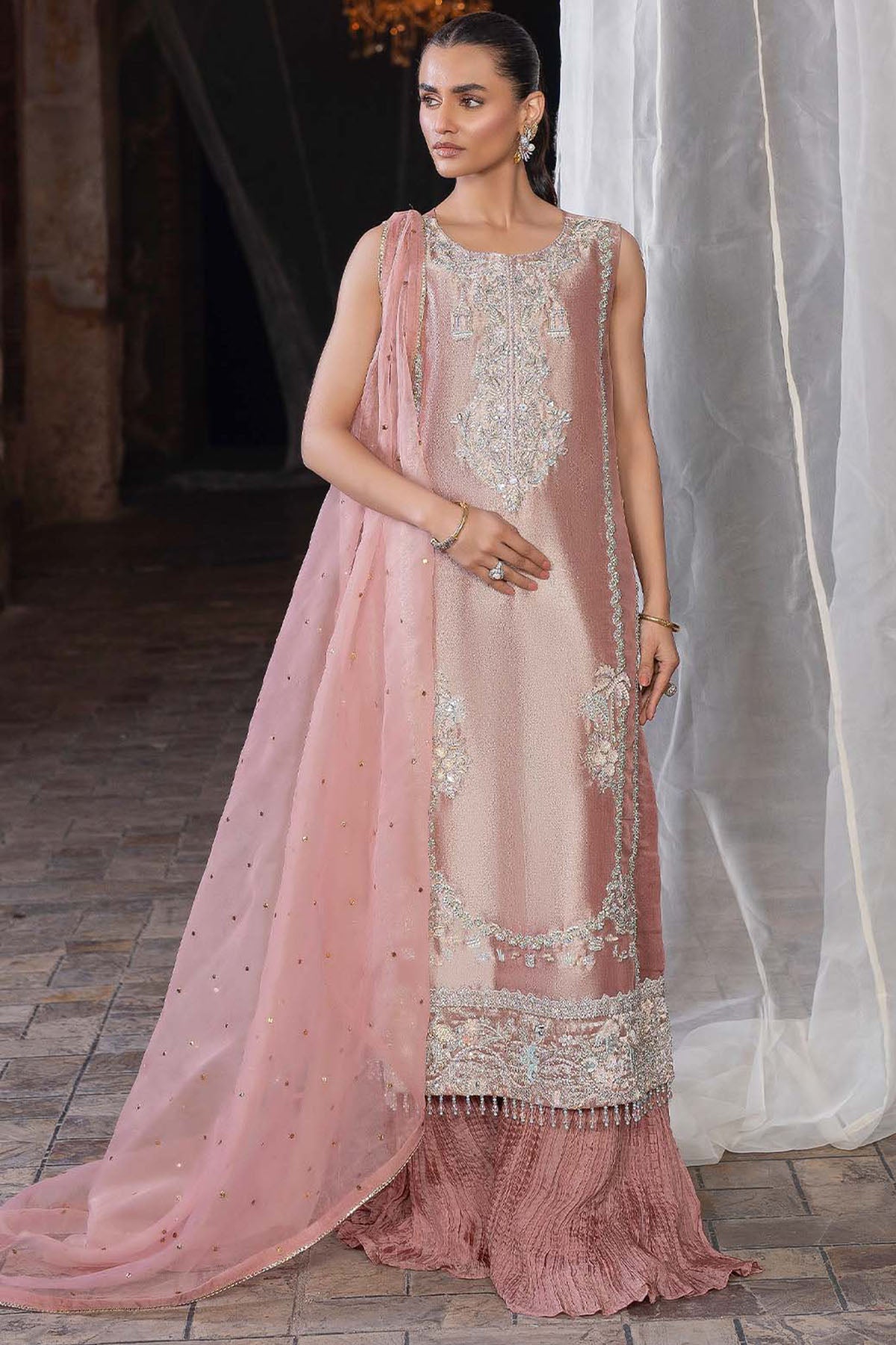 The Organza Dupatta Adds A Dreamy Layer, Making It The Perfect Pick For Festive Soirées Or Elegant Evenings.