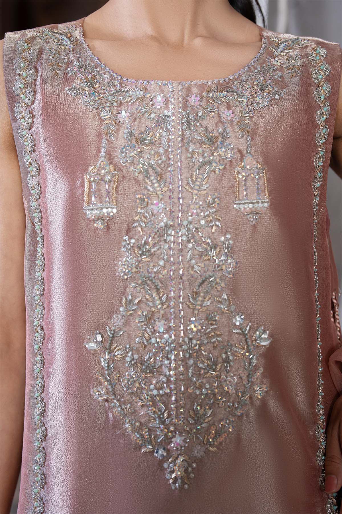 This Peach Tissue Shirt Is A Celebration Of Grace Hand-Embellished With Intricate Detailing And Paired With Crushed Pants For A Soft, Flowy Silhouette.
