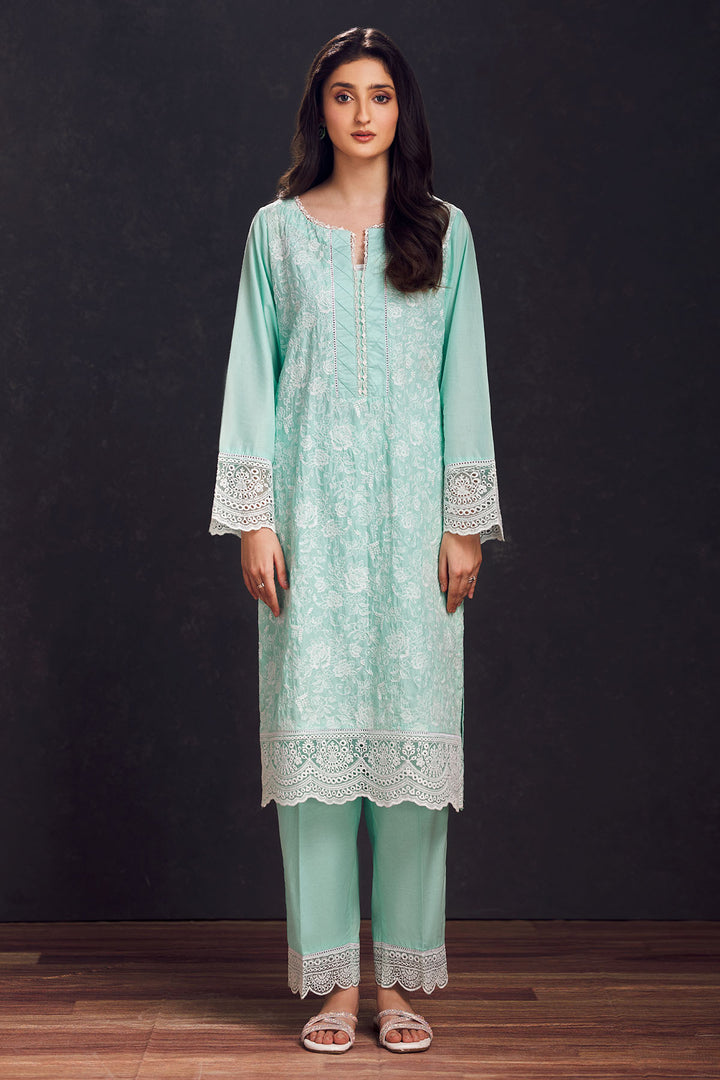 3998-SEA-GREEN SCHIFFLI EMBROIDERED LAWN STITCHED
