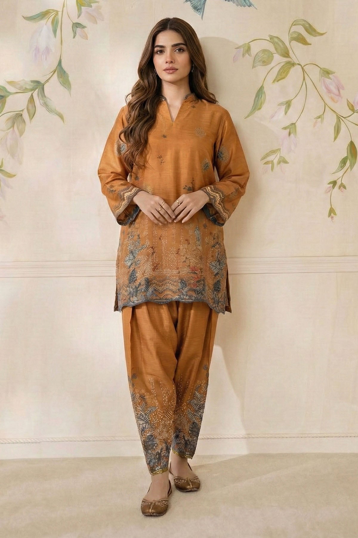 5786-NIARA DIGITAL PRINTED RAW SILK STITCHED