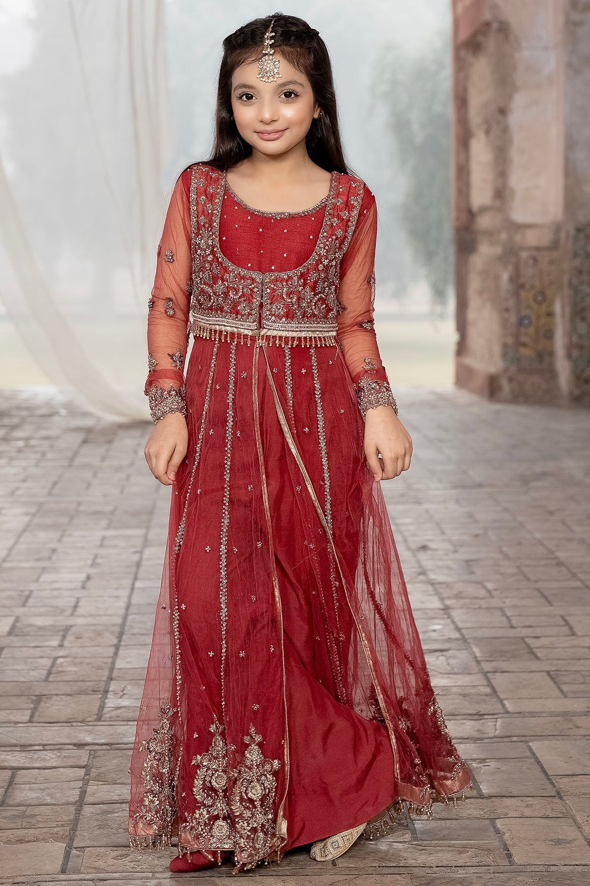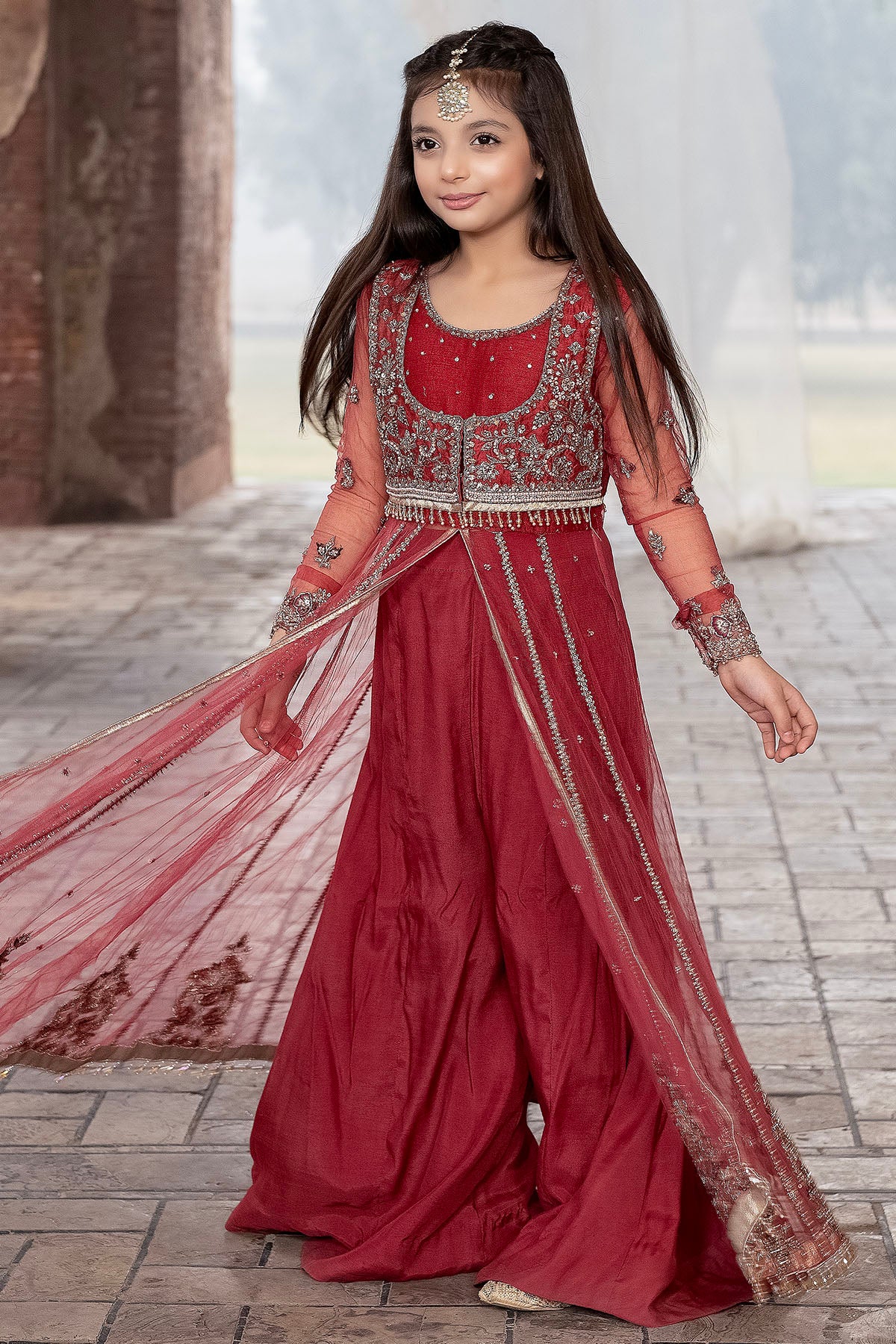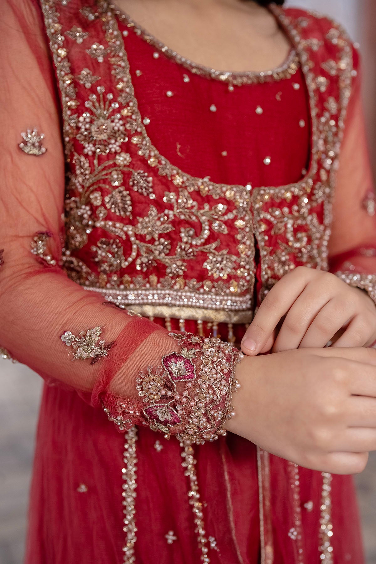 The Coral Pink Pishwas Exudes Sheer Elegance With Its Delicate Handwork And Intricate Details. The Fresh Hue Is Enhanced By A Touch Of Crystal Embellishment, Adding A Hint Of Glamour.