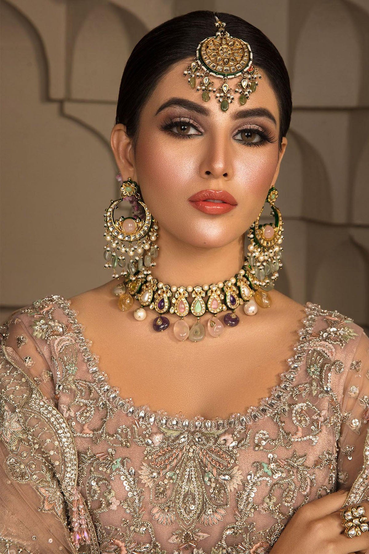 It Is Equally Intricate And Detailed With Beautiful Colourful Floral Patterns Which Are Embellished With Crystals, Stones And Kora Dabka.