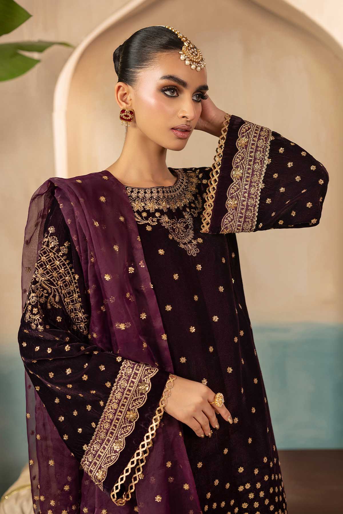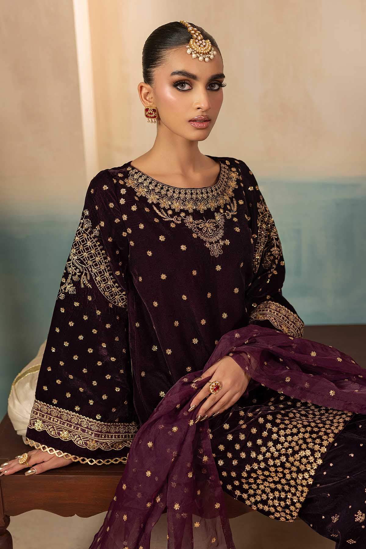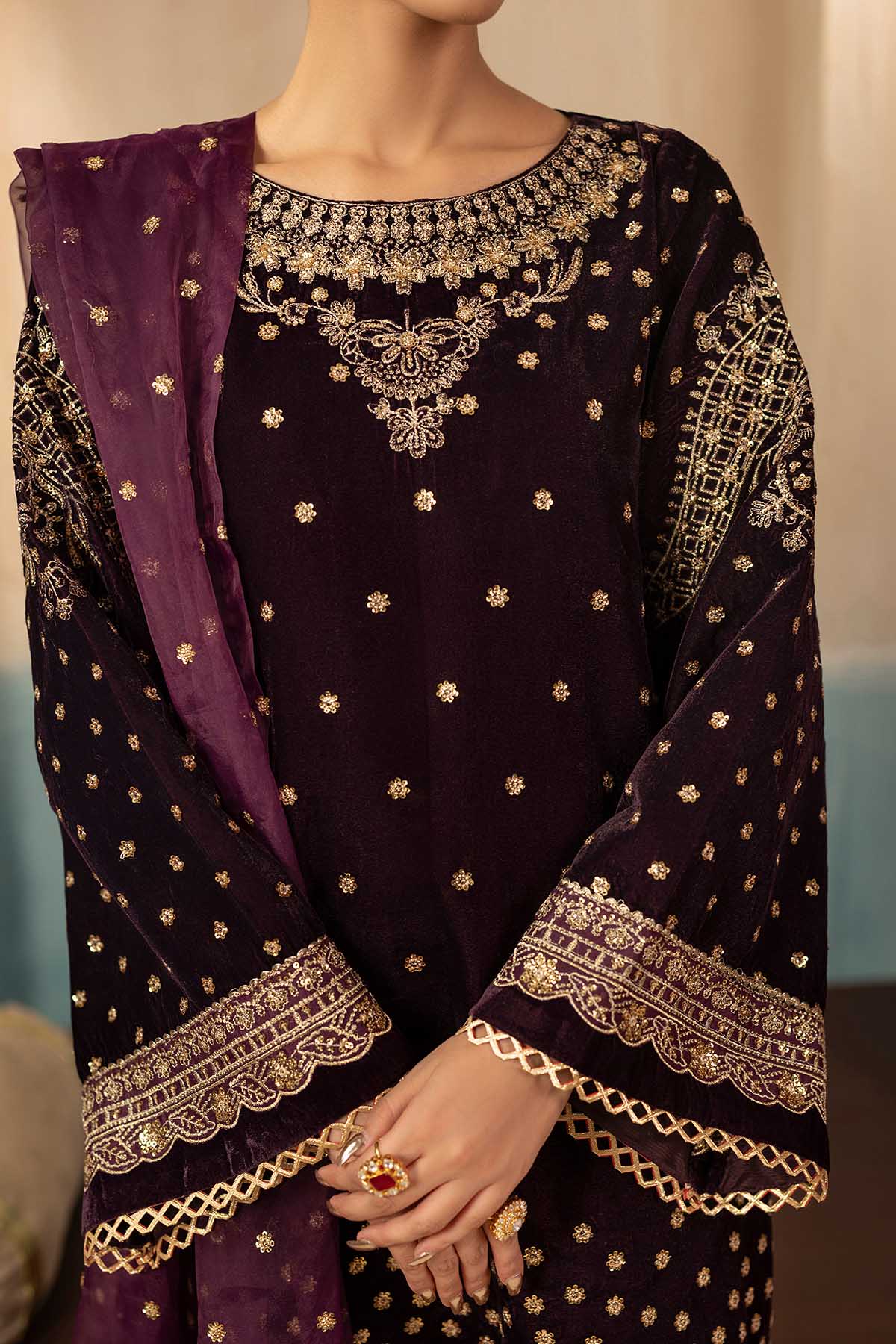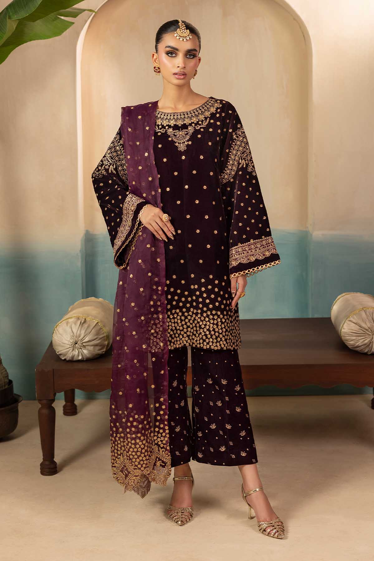 5668-CORAL EMBROIDERED VELVET UNSTITCHED