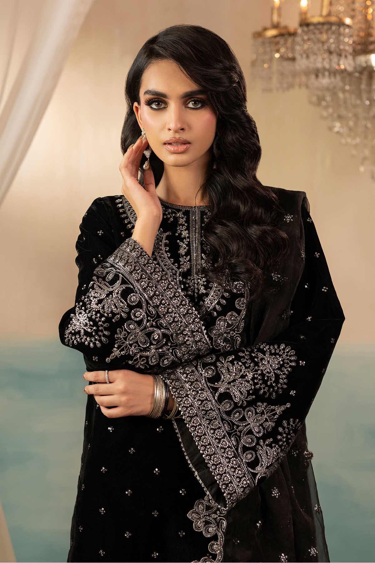 5670-KATIE EMBROIDERED VELVET UNSTITCHED